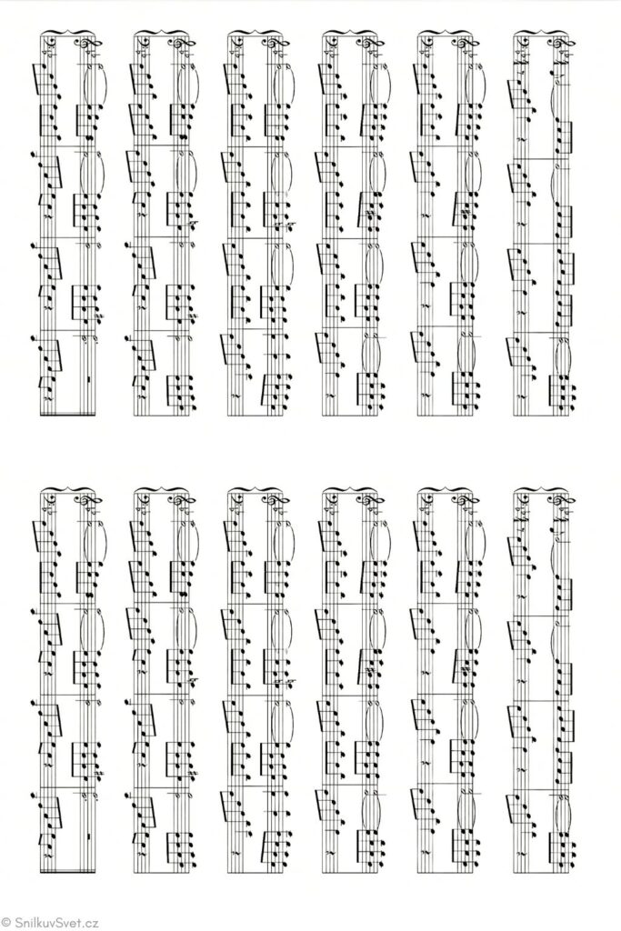 - Notový papír (nebo jakýkoliv pevnější papír s potiskem).