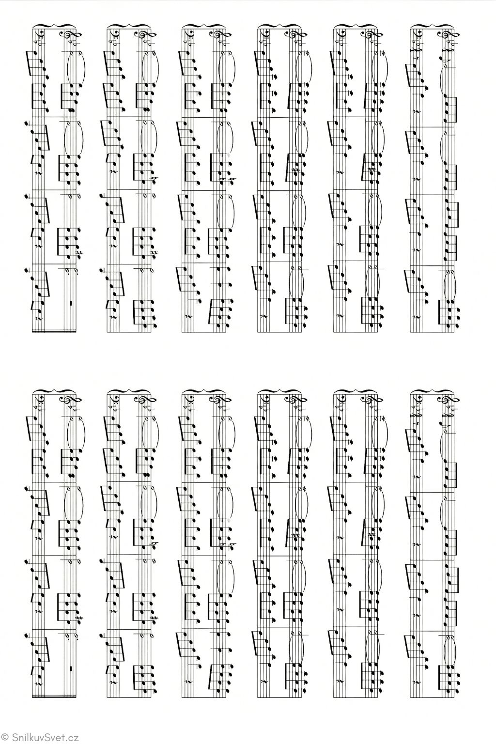 - Notový papír (nebo jakýkoliv pevnější papír s potiskem).