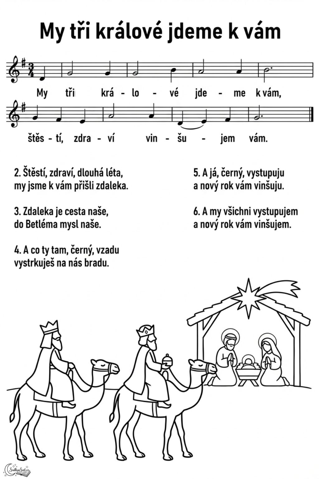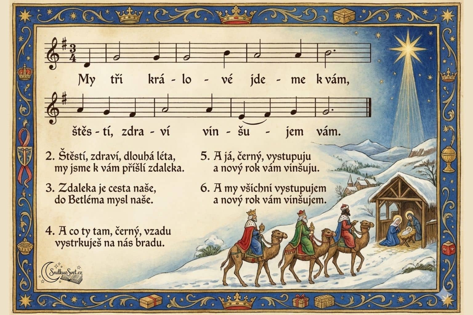 Svátek Tří králů je neodmyslitelnou tečkou za vánočním obdobím. Je to čas, kdy se domy plní nápisy K+M+B, děti si nasazují papírové koruny a ulicemi zní známá koleda. Abychom vám i dětem toto období zpříjemnili, připravili jsme pro vás krásné zpracování písně „My tři králové jdeme k vám“ ve dvou verzích i s notami.