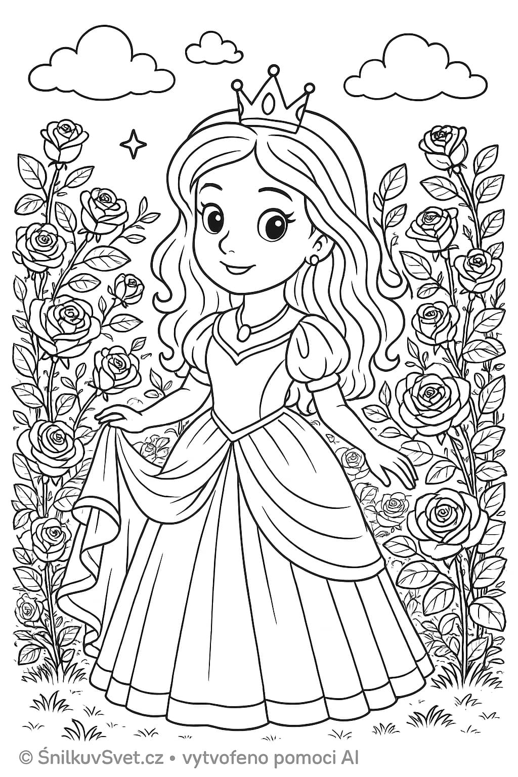 SnilkuvSvet » Omalovánky » Omalovánka Princezna v růžové zahradě