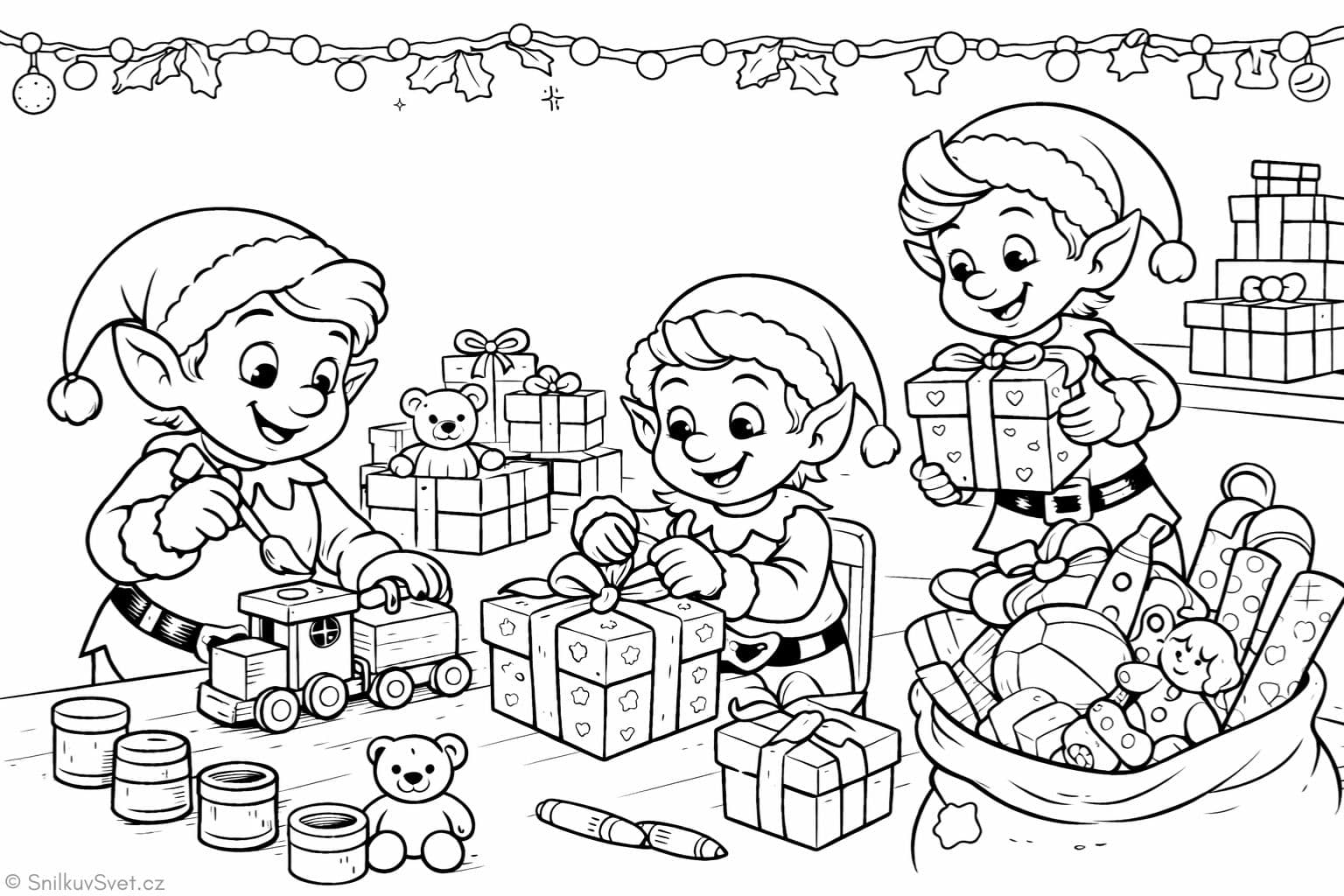 V kouzelné vánoční dílně je rušno. Skřítci mají plné ruce práce, protože Vánoce se blíží. Hodí se pro menší i větší děti, které si chtějí v klidu vybarvovat, vymýšlet vlastní barvy dárků a představovat si, komu asi skřítci tyto poklady chystají.