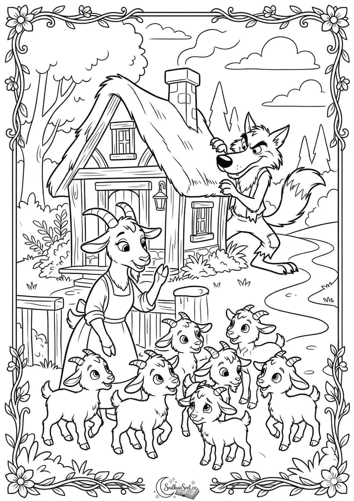 Hledáte klidnou a kreativní zábavu pro děti? Připravili jsme pro vás novou omalovánku na motivy jedné z nejoblíbenějších klasických pohádek Vlk a sedm kůzlátek! Děti si na ní mohou podle vlastní fantazie vybarvit starostlivou maminku kozu, všech sedm neposedných kůzlátek i záludného vlka.