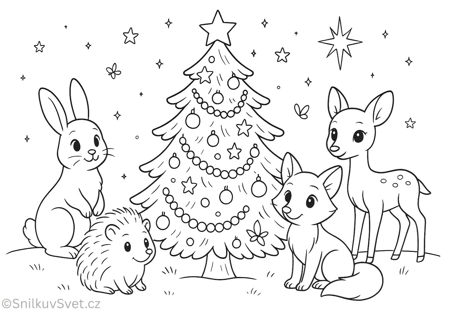 SnilkuvSvet » Omalovánky » Omalovánka zvířátka z lesa se připravují na Vánoce