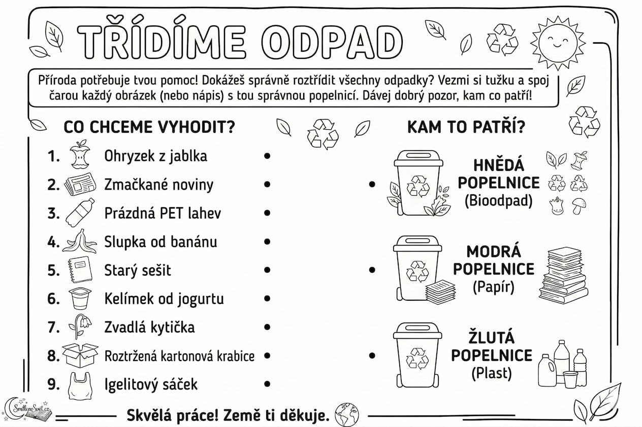 📥 Pracovní list k vytištění: Třídíme odpad