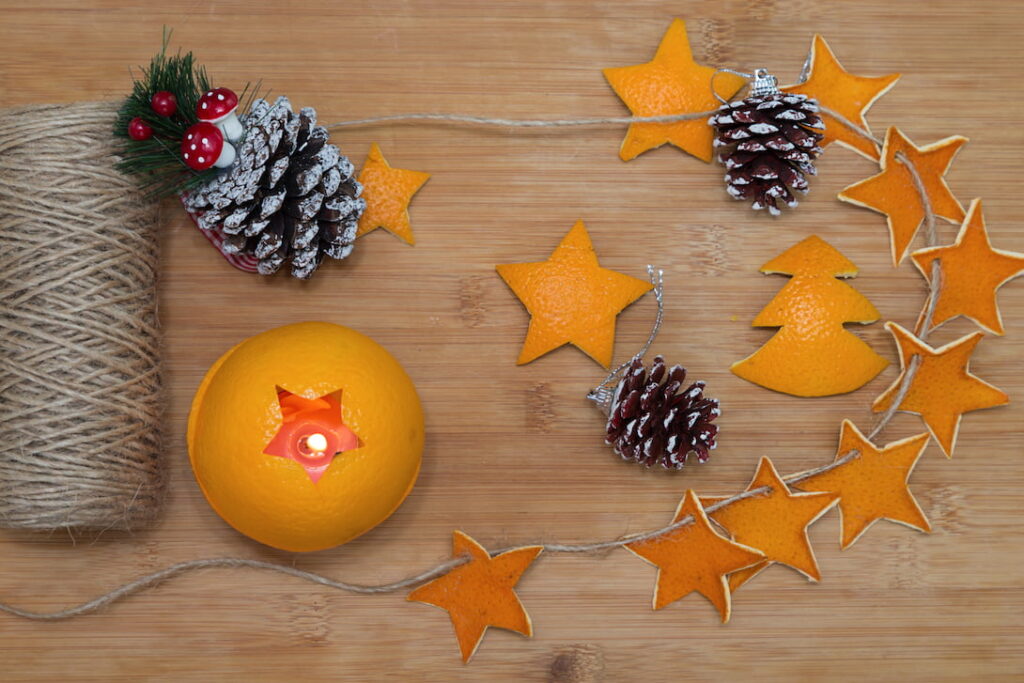 - Pomeranč svým tvarem a barvou připomíná slunce a návrat světla v nejtemnější části roku. Sušené plátky pomeranče ve věnci nebo závěsné dekoraci opravdu vypadají jako malá oranžová sluníčka.