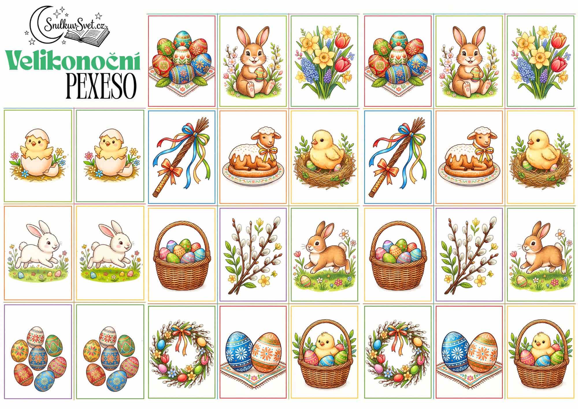 Naše velikonoční pexeso je malým dárkem pro vás a vaše děti, aby byly tyto svátky ještě o něco kouzelnější.