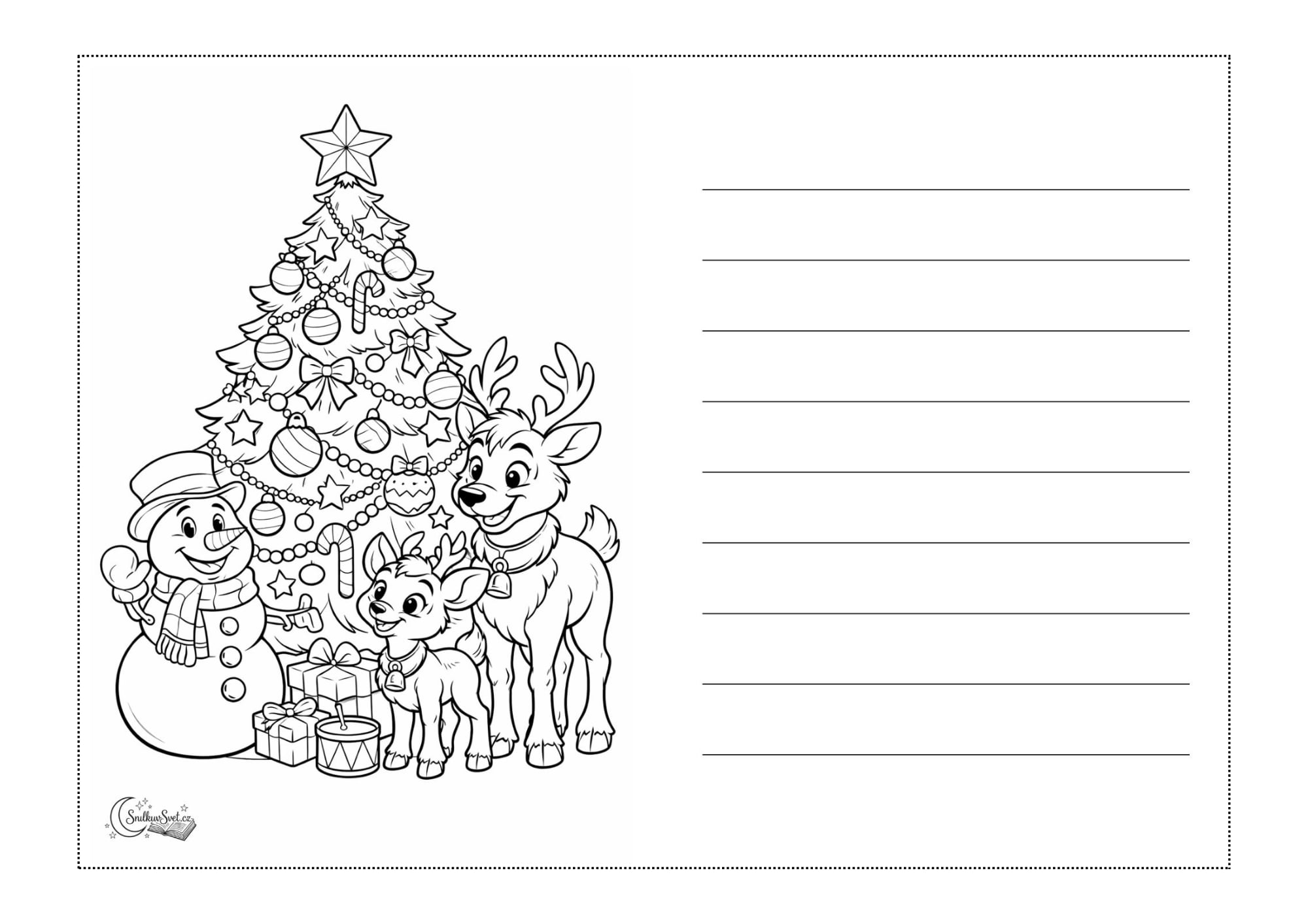 Stáhněte si naše vánoční přání se sobíky, sněhulákem a stromečkem a vytvořte spolu s dětmi krásné vánoční přáníčko.