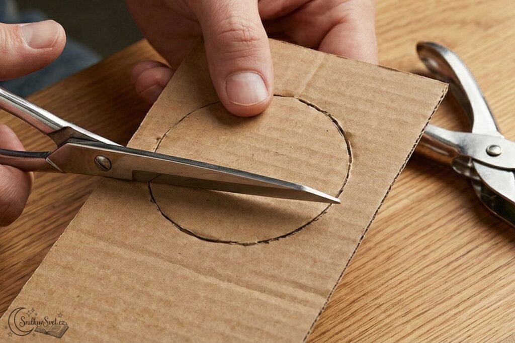 - Děrovačku (nebo ostré nůžky pro dospělého na vytvoření dírky).