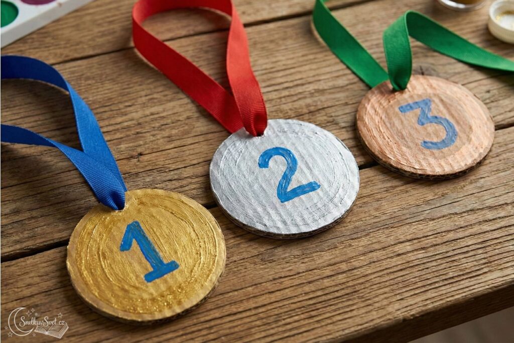 Až budou medaile hotové, uspořádejte malý ceremoniál. Oceňte děti nejen za výrobu medaile, ale připomeňte jim konkrétní situaci z poslední doby, kdy projevily vytrvalost, odvahu.